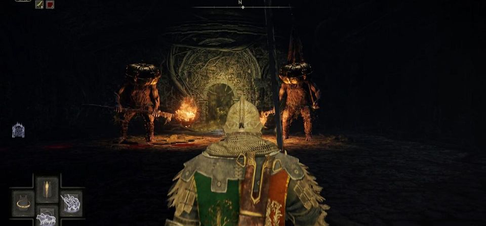 来到奇列姆废墟之后沿着断桥向前走,见到一个地洞之后就可以下去了,和单南瓜头的进入方式是一样的,前面是一个类似于水帘洞的雾门,走进去就能看到双南瓜头了。这两个南瓜头会协力攻击,而且动作都是比较快的。注意观察对方手部动作,必要的时刻召唤出来坐骑躲避其致命伤害。