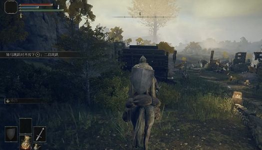 想要使用灵马哨笛我们可以直接在背包里检索使用或者是将灵马哨笛放置在快速装备栏(随身包包)中进行使用。吹响灵马哨笛之后就可以快速上马,灵马拥有一个单独的血量槽,血量槽清空之后可以通过消耗红露滴圣杯瓶的方式来进行重新召唤。在骑乘状态下,玩家不仅可以进行快速的场景内移动,还能够进行二段跳跃以及通过乘风来快速跳跃至较高地形。