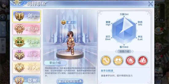 初学者只需达标后,即可转职剑士。剑士以粗犷的造型,防御和持久战斗的能力深受新玩家喜爱。他们在可以造成较高的伤害,同时还能抵挡敌方攻击,并带有自我恢复的能力。而面对负面状态和特殊怪物,剑士具备较高耐受能力。