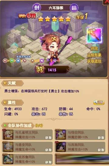 阵容特点:本套阵容里面集合了5个人UR英雄和一个SSR孙悟空,这五个UR英雄每个拿出来都可以力压群雄,同时,他们在一起协同作战,还可以开启全队写作加成的效果,比如六耳猕猴和孔雀明王同队可以为神魔攻击加10%,而和西施同队也同样可以加成10%,这一次就相当于加成了20%;而西施和杨玉环同队也可以加成10%,貂蝉和六耳猕猴同样也可以加成10%,这样一来就可以加成共计40%的攻击力!另外不仅攻击有加成,生命也同样有加成,这就是这套阵容的威力所在,六个人能打出八个人的效果,如果你没有适合的阵容,河马手游网小编游戏人生首推这套,绝对可以让你原地起飞。