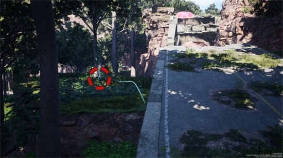 如果通往挖掘点的蓝线被建筑或地形阻挡,就会中断,需要绕过建筑或地形高低差再次按【十字键上】闻气味,只要看到蓝线的尽头,就可以走到尽头指示的位置按【十字键下】来挖掘,挖掘可以获得的大多都是制作材料,除此之外还有PLAY ART展品。