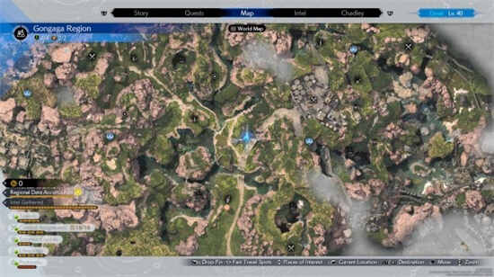 位于贡加加地区的南边,需要先获得森林陆行鸟并推进主线至解锁探索贡加加的所有区域。具体位置在莫古力小屋北边、通讯塔东边。从莫古力小屋出发是一条上坡路,中间两处地形有高低差。在第二处断层位置两侧有粉色蘑菇,从南边的粉色蘑菇往西看,草丛里有一棵树,让陆行鸟在树下闻气味即可。