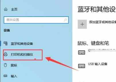 2、再点击左侧任务栏的“打印机和扫描仪”