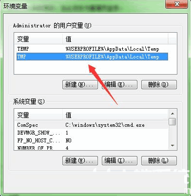 5、进入环境变量后,【双击】TMP。