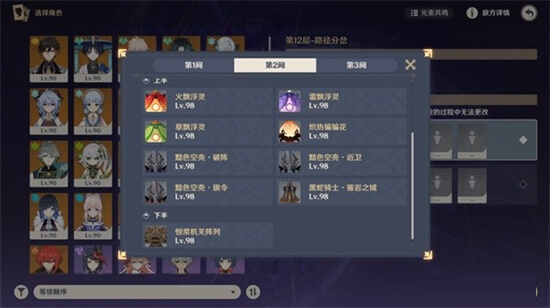 举个例子:上半的前两间,我们可以使用神里绫华的永冻队,满星通过后切换别的队伍通过第三间。不建议非满命神里绫华、申鹤尝试通过冰风组曲。