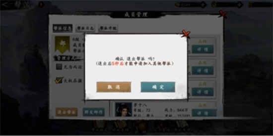 第四步:玩家退出帮派后,角色需要等待一段时间才能申请加入其它帮派。