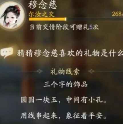 射雕手游穆念慈喜欢的礼物是什么