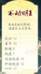 4、不动明王:见识身手10内外攻12韧性外功招架12 ,喜欢玩PVP的必选,防外功