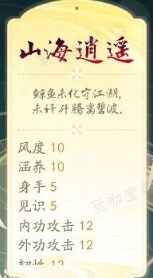 6、山海逍遥:增加风度涵养,增加10内外攻击12韧性12内功招架12,喜欢玩PVP的必选,防内功