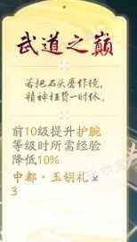 7、武道之巅:前10级护腕经验降低10%和玉钥3个 ,玉钥是可以加快前期进度的,不过中后期大家就都进度一样了,所以可以选择保留