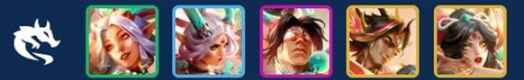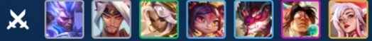 诺手德莱厄斯(1)+亚索(1)+奇亚娜(2)+小炮(3)+狗熊沃利贝尔(3)+盲僧(4)+刀妹艾瑞莉娅(5)