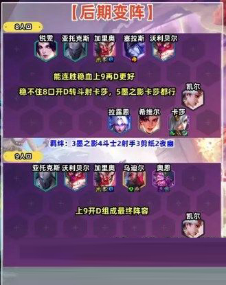 羁绊:5墨之影、2射手、3剪纸、2绝哦度、2斗士、2擎天卫
