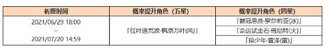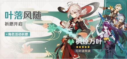 ●活动期间,限定五星角色「红叶逐荒波·枫原万叶(风)」的祈愿获取概率将大幅提升!