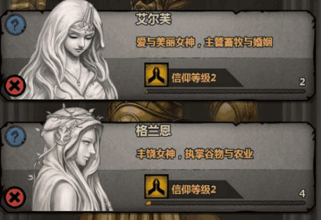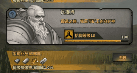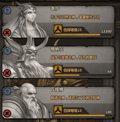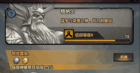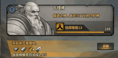 目前我的神庙等级为6级可以建造8个神像,我只知道这么多也许以后还有其他的目前来看着应该是该等级建造的全部了。大家注意到信仰等级没有,我们接下来要说的就和这个有关,信仰等级是你通过祈祷累计经验升级而来。哪信仰等级有什么用呢如下图: