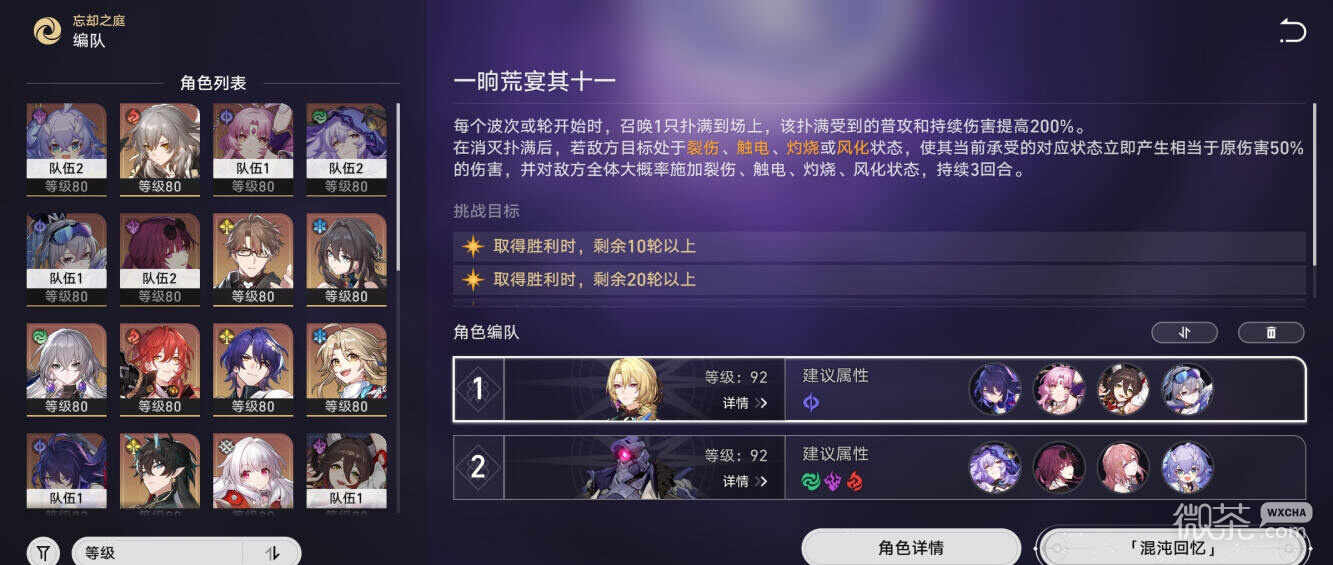 《崩坏:星穹铁道》混沌回忆-一晌荒宴十一、十二阵容一览