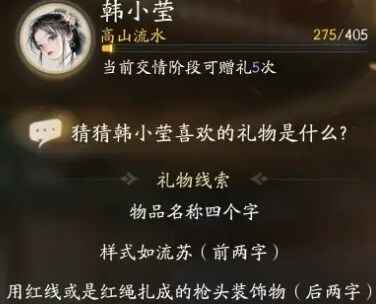 射雕手游韩小莹喜欢的礼物有什么 射雕手游韩小莹喜欢的礼物一览