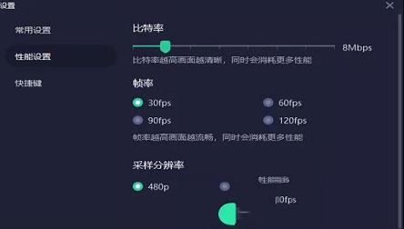 4、还可以设置比特率、帧率和采样分辨率,超高性能畅玩游戏。