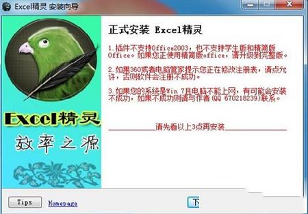 1、《E灵》支持Excel 2007、2010、2013和2016,不支持Excel 2003。2、Win Xp和Win 7需要先装运行环境,在前两次询问对话框中点“是”,否则插件不可用。