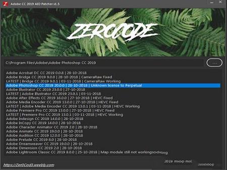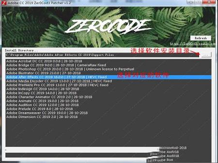 2、打开通用破解工具Zer0Cod3 Patcher 1.5.exe,选择对应软件的版本,然后点击Download & Patch完成破解,破解工具默认选择C:\Program Files (x86)\Adobe或者C:\Program Files\Adobe,可以点击选择软件安装目录即可。