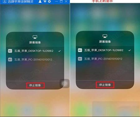 4、如果不想要投屏了,就叉掉电脑上的投屏界面或者点开苹果手机上的菜单栏点击链接的设备进去点击“停止镜像”,就可以结束手机投屏