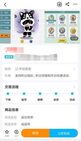 1、迷你世界游戏交易专区当中,可以让玩家们获取到丰富的账号交易类型。大家在进入到交易猫app之后,就可以通过搜索进入到迷你世界的专区,然后通过筛选功能来了解自己感兴趣的内容,不同的账号类型,可以满足玩家不一样的使用需求。同时,也支持玩家们将自己的商品信息发布到专区当中。