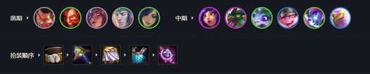 前期的话小伙伴们就用强力单卡过渡,如果羊刀来得早可以直接给射手或者是狂刃战士们进行过渡,毕竟游戏当中的羊刀前期战斗力还是很强的。此外这个版本坦克基本都是必备狂徒的,小伙伴们前期打算连胜的话也可以直接合成,鬼书的优先级下降一点,毕竟不是上个版本的七仙女体系。