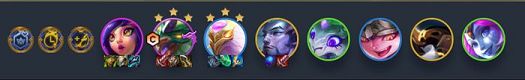 这一套的话算是娱乐阵容,如果大家前面ez来的比较多的话还是可以玩的,首先我们选择石傲玉+宝石+艾希+卡尔玛组成6玉龙羁绊。然后加个曙光女神凑齐2护卫,由于他的技能自带高额的减伤能力,搭配上持续回血坦度极高,甚至不比艾达丝差。接着我们此时是6人口,然后加上ez跟瞎子即可。