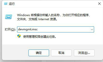 2、然后在其中输入“devmgmt.msc”回车确定,即可打开设备管理器。