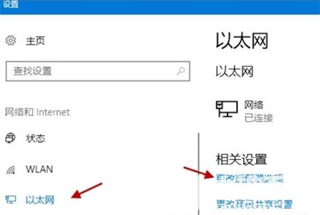 4、在WIN10系统中,关闭移动热点,并打开以太网络适配器设置,如下图: