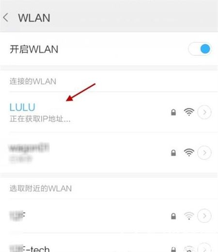 3、打开手机WIFI设置,搜索并连接在WIN10中所设置的移动热点名称;此时,该WIFI移动热点一直显示“正在获取IP地址…”,而无法连接上WIFI,如下图: