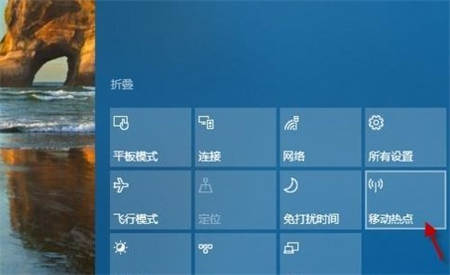 1、在Win10系统中(版本号1709),点击信息通知栏,再点击“移动热点”,来打开WIFI移动热点信号,如下图: