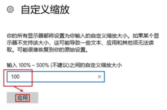 4、需要输入的大小缩放,然后单击“应用”,如下图。(根据电脑推荐的最佳比例来调整)