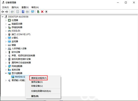 6、最后,再展开显示适配器,然后右键点击显卡设备,在打开的菜单项中,选择更新驱动程序。