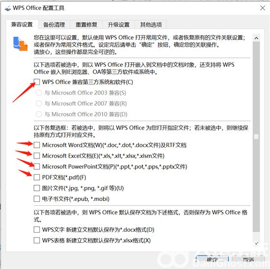 4、在弹出的页面中点击取消“Wps Office兼容第三方系统和软件”前的方框,然后就完成了。