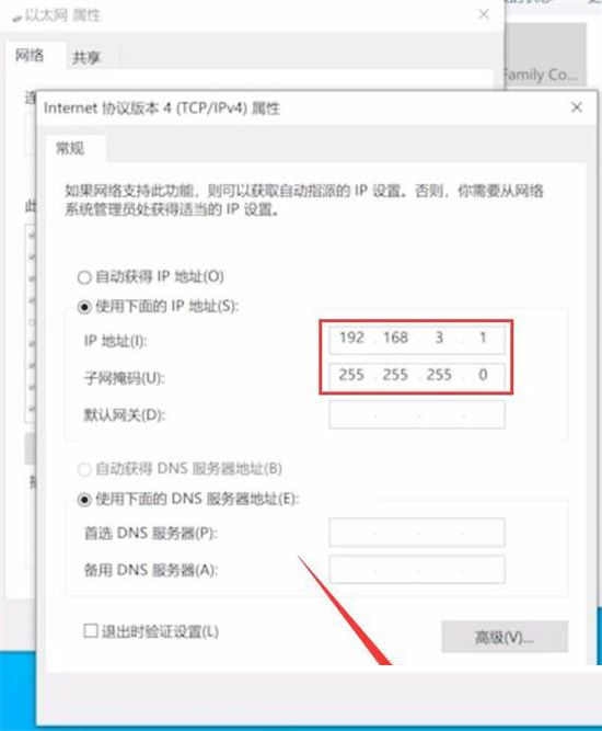 7、输入IP地址与子网掩码,点击确定,再次点击确定即可。