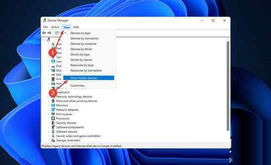 单击窗口顶部的查看,然后选择显示隐藏的设备以显示 Nvidiai 显卡。如果仍然没有显示,您应该继续下一个解决方案。