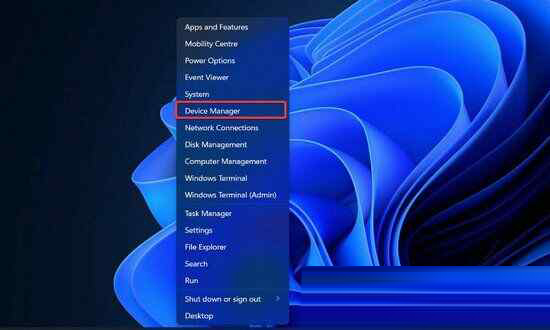右键单击 开始 图标,然后单击 设备管理器 将其打开。