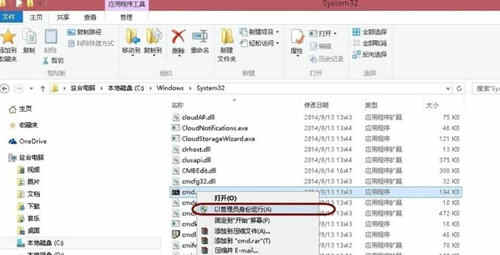 6、这时,可以找到系统盘文件夹Windows/system32中的cmd.exe文件;
