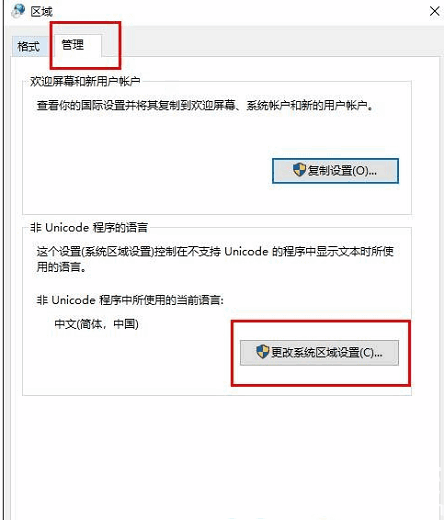 5、再次打开“更改系统区域设置”,将语言设置回“中文”即可。