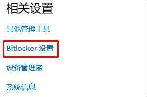 3、在“关于”选项右侧设置界面移动到自动最下面,在相关设置 下点击 【BitLocker 设置】;