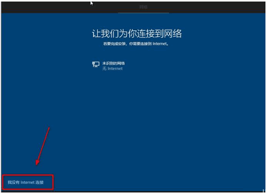 2、安装部署中会跳出“让我们为你连接到网络”这个页面——点击“我没有internet连接”