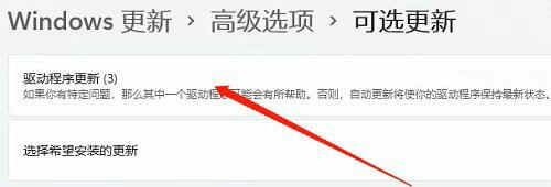 7、当前路径为:Windows 更新 > 高级选项 > 可选更新,点击【驱动程序更新】;