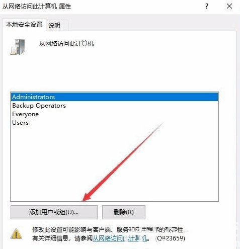 5、这时可以打开属性窗口,在窗口中点击“添加用户或组”按钮。