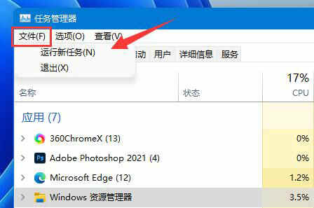 2、打开后,点击左上角“文件”,点击“运行新任务”