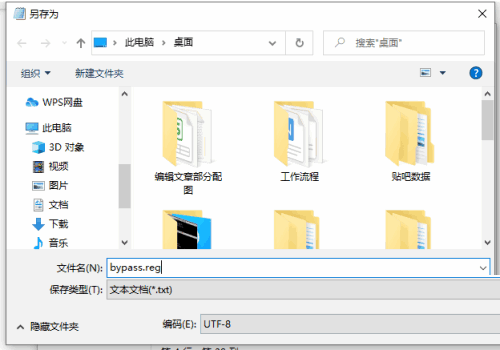 2、接着把文件另存为bypass.reg(注意在另存文件的时候,把后缀扩展名修改为.reg)。