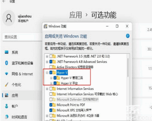 1、打开控制面板-程序-启用或关闭Windows功能,可能你的电脑上发现没有Hyper-V,连vm也无法使用(如果你的打开有的话就如下图勾上,重启电脑即可),没有Hyper-V需要安装,可以转到下面1.2步骤安装。
