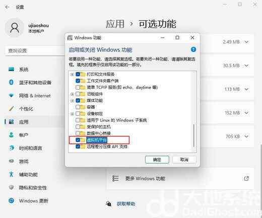 以上就是win11虚拟机平台启用步骤,在安装wsa安卓子系统之前,必须先开启虚拟机平台。