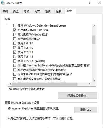 4、选择左下角“Internet选项”-“高级”-将“使用TLS1.1”和“使用TLS1.2”勾选-确定,然后小组件就可以使用。