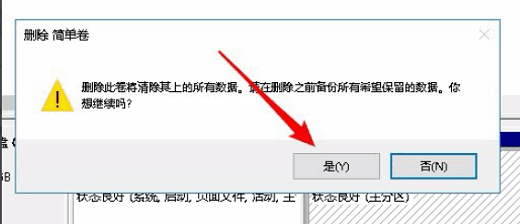 3、这时会弹出一下删除简单卷的提示窗口,点击“是”按钮就可以了。