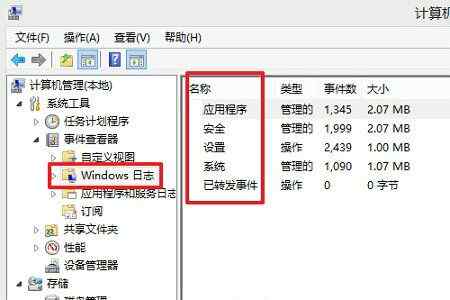 4、接着点击“windows日志”,在右边选择想要查看的事件分类。